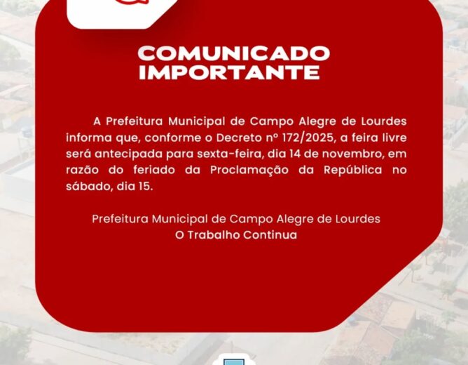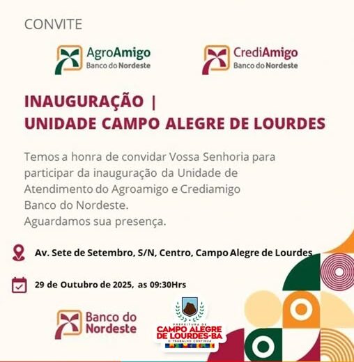 CNPJ: 14.117.329/0001-41 Endereço: Rua Abílio Dias S/N, Centro, Campo Alegre de Lourdes/BA Horário de Funcionamento: Segunda a Sexta-feira das 8h às 14h Email: contato@campoalegredelourdes.ba.gov.br