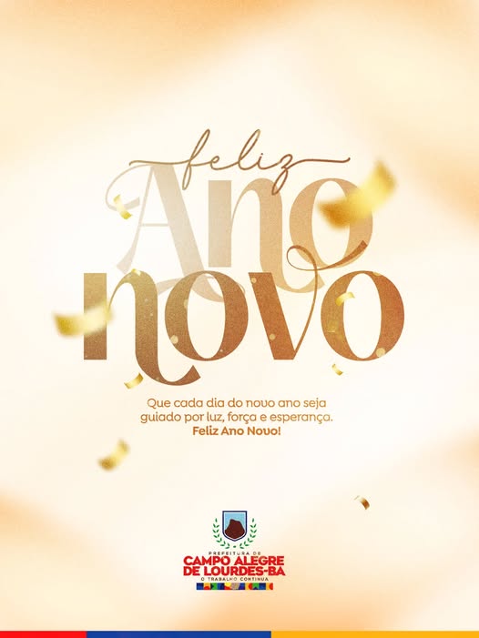 Um novo ano se inicia trazendo esperança, fé e novas oportunidades. Que 2026 seja um tempo de paz, saúde, união e muito trabalho pelo desenvolvimento do nosso município.
